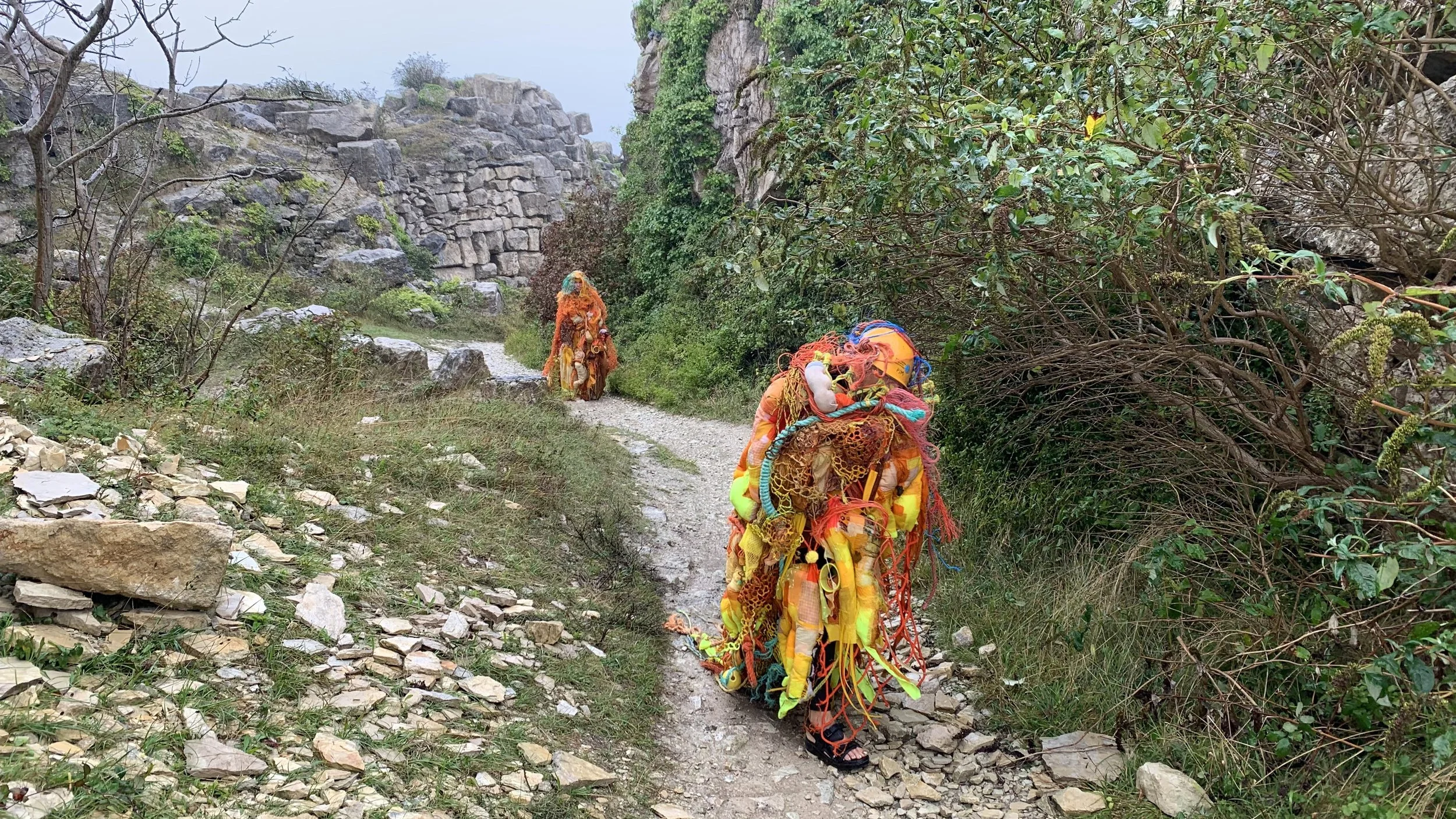 On a very rainy day last month I performed with Melanie Thompson wearing Riot (in 2 parts) at its site in the quarry, Portland (what3words: ///deliver.press.tilts). Thanks to the small audience who braved the elements to watch. There will be a film produced of the event by Andy Ralston, which I will publish when edited.